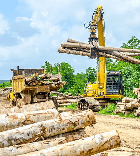 伐採(収穫)した丸太は、ケーブルなどで吊るして山から林道まで運び出されたり、ウインチで引っ張ったりして搬出されます。積みおろし機などで集めてトラックに積み込まれ、原木市場や貯木場へ運ばれます。原木市場や貯木場へ運ばれた木材は競りで製材業者に買われます。また、直接製材工場に運搬される場合もあります。