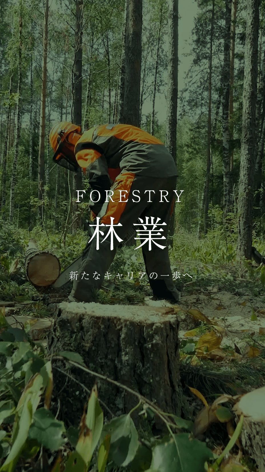 林業は、苗木を植え育て、育成した樹木を伐採して収穫し売る産業です。木を収穫した後には、再度苗木を植え新しい木を育てます。収穫を迎える50~60年間、大切に世話をします。この一連の作業を林業従事者が行います。